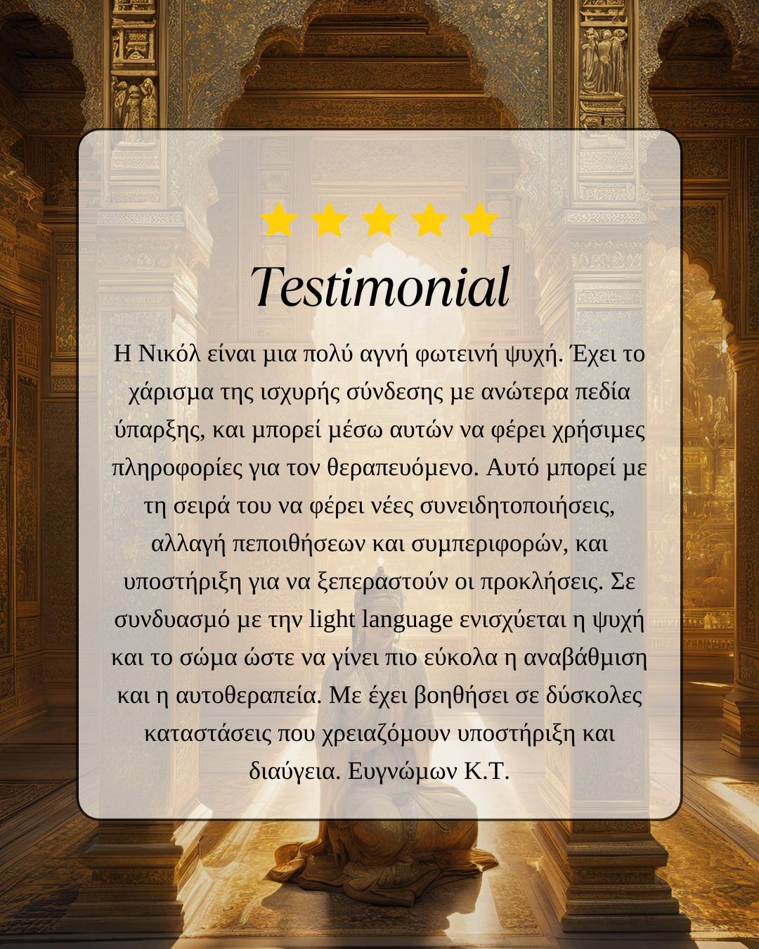"Η φόρμουλα στις προσωπικές συνεδρίες 1:1 περνάει σε μια νέα οκτάβα. Συντονισμένη με την συχνότητα της Δρακοντικής Σοφίας και την Πύλη 33, η επένδυση για την προσωπική σου μύηση διαμορφώνεται πλέον από 222€ στα 333€ στις 03.03.